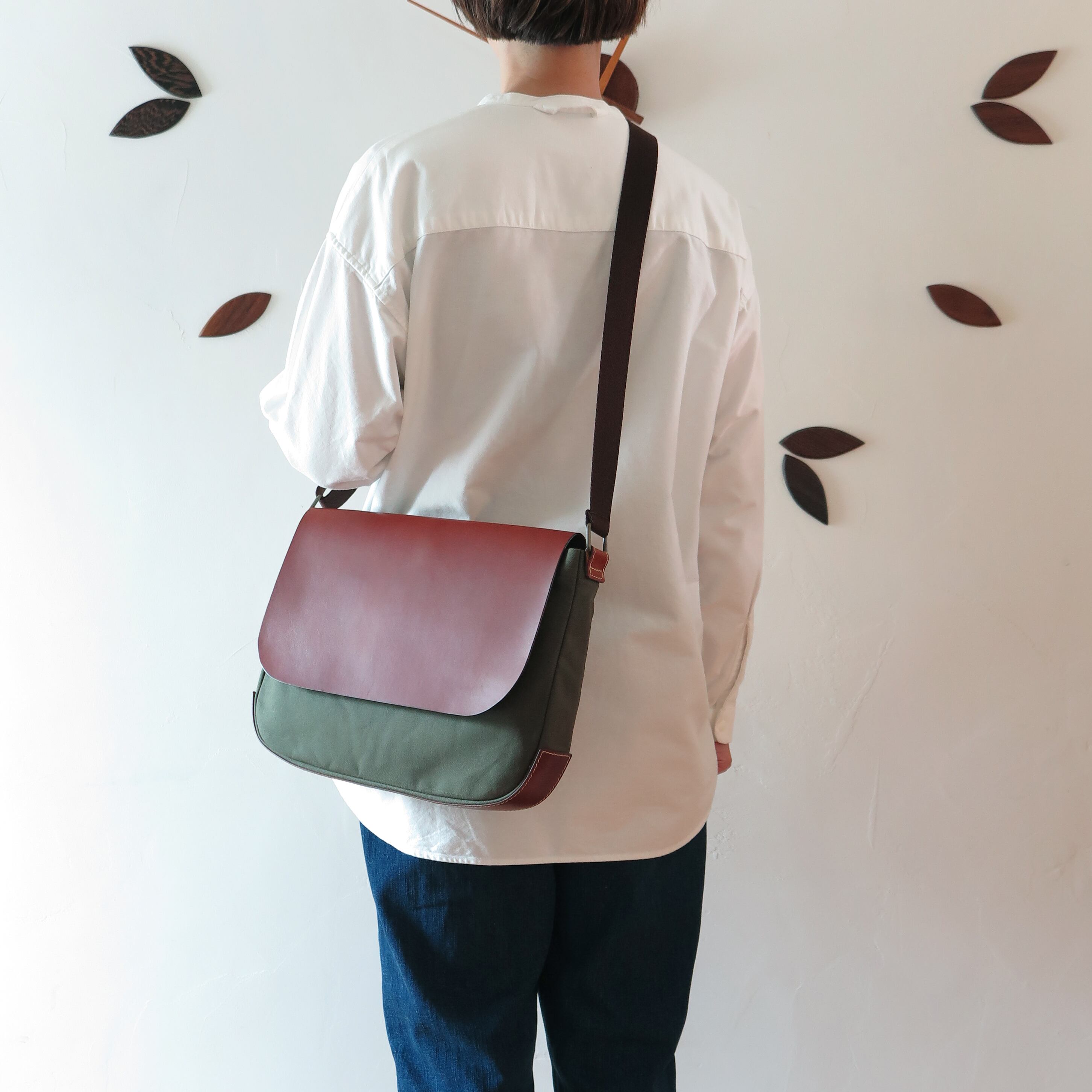 Color : KHAKI(レザー部分はD.BROWNの本ヌメ革、ショルダーベルトはD.BROWN)